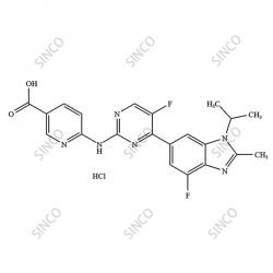 | Synonyms: | 6-({5-fluoro-4-[7-fluoro-2-methyl-3-(prop-2-yl)benzo[d]imidazol-5-yl]pyrimidin-2-yl}amino)pyridine-3-carboxylic acid hydrogen chloride |