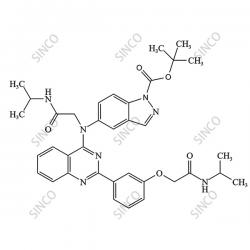 | Synonyms: | 2-methylpropan-2-yl 5-{[2-oxo-2-(prop-2-ylamino)ethyl][2-(3-{[1-oxo-1-(prop-2-ylamino)eth-2-yl]oxy}phenyl)quinazolin-4-yl]amino}indazole-1-carboxylate |