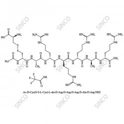 | Synonyms: | (2R)-3-{[(6R,9R,12R,15R,18R,21S,24S)-24-(acetylamino)-1-amino-12,15,18-tris(3-{[amino(azanylidene)methyl]amino}propyl)-1-azanylidene-6-carbamoyl-9,21-dimethyl-8,11,14,17,20,23-hexaoxo-2,7,10,13,16,19,22-heptazapentacos-25-yl]disulfanyl}-2-aminopropanoic acid 2,2,2-trifluoroacetic acid |