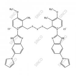 | Synonyms: | 4-methoxy-2-{[3-({4-methoxy-3-methyl-1-[5-(pyrrol-1-yl)-1H-benzo[d]imidazol-2-yl]pyridin-1-ium-2-yl}methyl)trisulfanyl]methyl}-3-methyl-1-[5-(pyrrol-1-yl)-1H-benzo[d]imidazol-2-yl]pyridin-1-ium chloride |