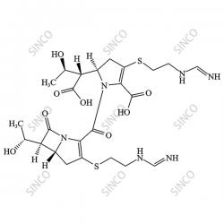 | Synonyms: | (5R)-1-{[(1S,6aR)-5-({2-[(azanylidenemethyl)amino]ethyl}sulfanyl)-1-[(1R)-1-hydroxyethyl]-2-oxo-1,2,6,6a-tetrahydroazeto[1,2-a]pyrrol-4-yl]carbonyl}-3-({2-[(azanylidenemethyl)amino]ethyl}sulfanyl)-5-[(1S,2R)-1-carboxy-2-hydroxypropyl]-4,5-dihydro-1H-pyrrole-2-carboxylic acid |
