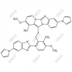 | Synonyms: | 2-[4-methoxy-2-({[2-methoxy-1-methyl-8-(pyrrol-1-yl)benzo[4',5']imidazo[3',2':1,2]imidazo[3,4-a]pyridin-12-yl]sulfanyl}methyl)-3-methylpyridin-1-ium-1-yl]-5-(pyrrol-1-yl)benzo[d]imidazol-1-ide |