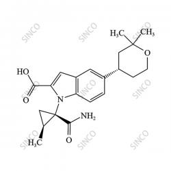 | Synonyms: | 1-[(1S,2S)-1-carbamoyl-2-methylcyclopropyl]-5-[(4S)-2,2-dimethyl-3,4,5,6-tetrahydro-2H-pyran-4-yl]indole-2-carboxylic acid |