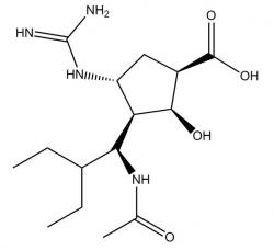 | Synonyms: | (1R,2S,3R,4R)-3-(1-acetamido-2-ethylbutyl)-4-guanidino-2-hydroxycyclopentane-1-carboxylic acid |