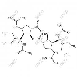 | Synonyms: | (1S,2S,3R,4R)-2-({[(1S,2S,3R,4R)-3-[(1S)-1-(acetylamino)-2-ethylbutyl]-4-{[amino(azanylidene)methyl]amino}-2-hydroxycyclopentyl]carbonyl}oxy)-3-[(1S)-1-(acetylamino)-2-ethylbutyl]-4-{[amino(azanylidene)methyl]amino}cyclopentane-1-carboxylic acid |